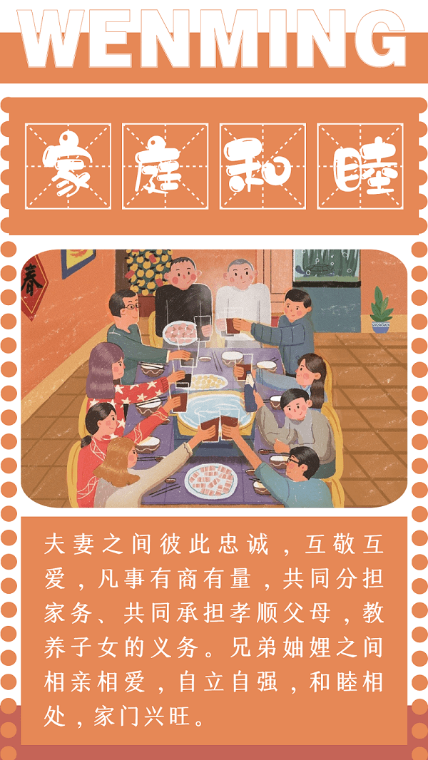家庭和睦則社會安定, 家庭幸福則社會祥和, 家庭文明則社會文明。 讓我們共同努力,重視家庭文明建設, 為祖國富強、為社會發(fā)展貢獻力量。